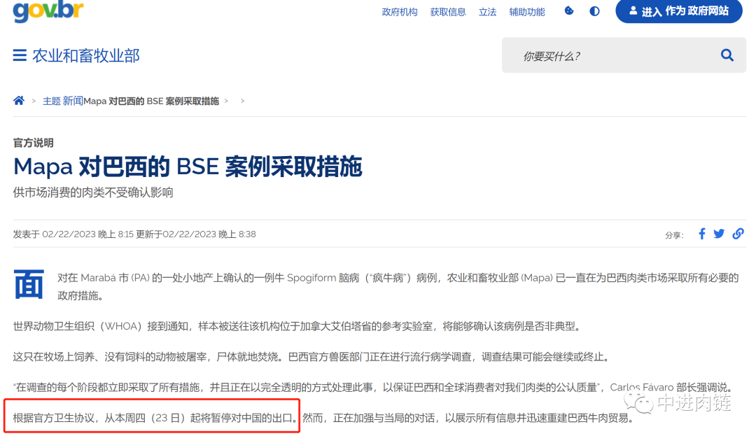 1、需要等待中國(guó)海關(guān)正式宣布暫停。海關(guān)稍后會(huì)宣布暫停接受艙單日期在2月23日或更早日期之后啟運(yùn)的巴西牛肉的進(jìn)口申報(bào)。也就是此日期之后的巴西牛肉無(wú)法進(jìn)入中國(guó)。